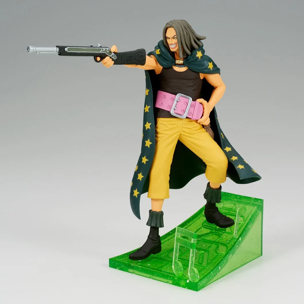 Bring the sharpshooting sniper of the Red-Haired Pirates to your collection with this Yasopp figure from the Senkouzekkei series, inspired by One Piece Film: Red. Crafted by Banpresto and Bandai Spirits, this figure showcases Yasopp in a dynamic pose with his signature rifle, vibrant yellow pants, and star-patterned cloak. A must-have for any serious One Piece fan or collector of the Red Hair crew.