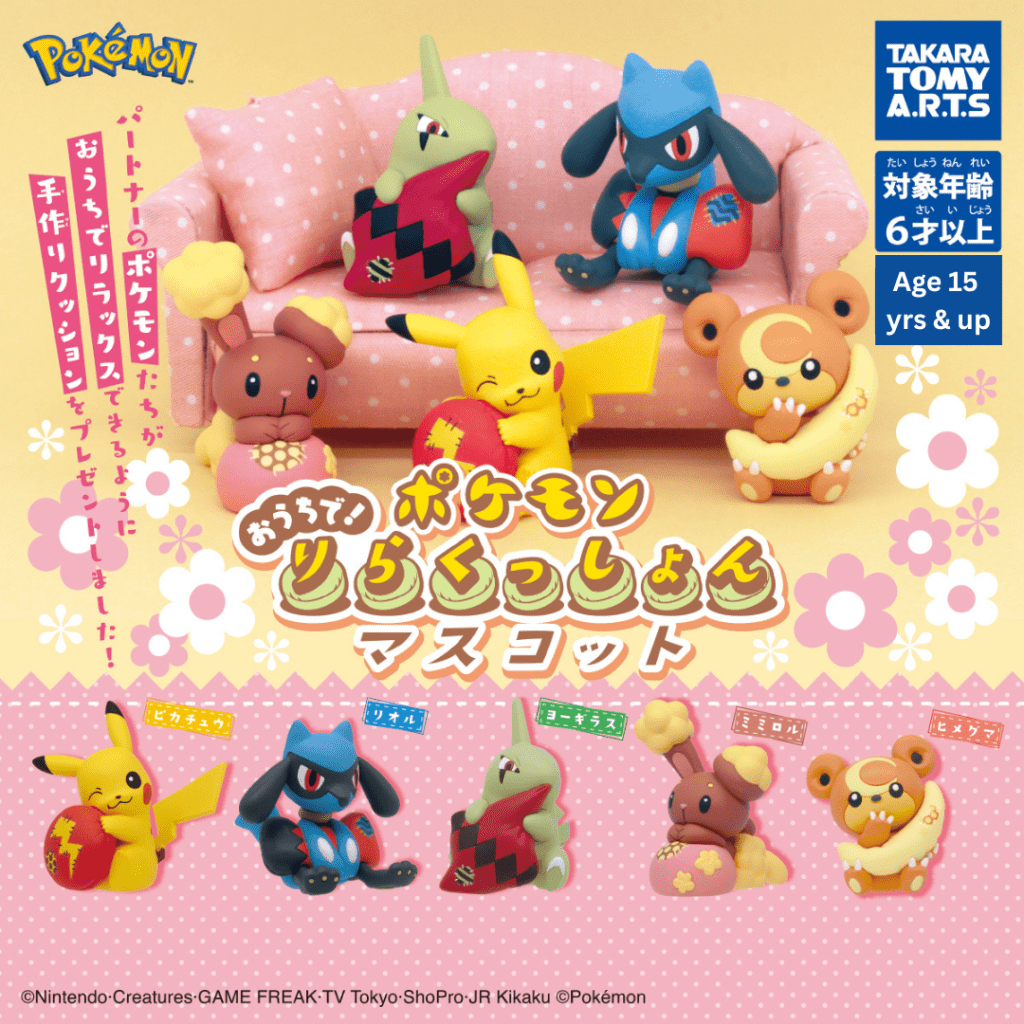Enjoy the cozy charm of Pokémon with the Pokémon Peaceful Place: Sweets Mascot Part 1 Gashapon series by Takara Tomy A.R.T.S! This adorable set features four dessert-themed soft PVC keychain mascots inspired by beloved Pokémon: Pikachu (Pikachu Lollipop), Rowlet (Rowlet Pancake), Scorbunny (Ice Cream Float), and Espurr (Grape Jelly Mold). Each comes with a paper tag illustration and ball chain, perfect for decorating bags, keyrings, or displaying as part of a pastel-themed collection. A must-have for fans of kawaii Pokémon merch and capsule toys!